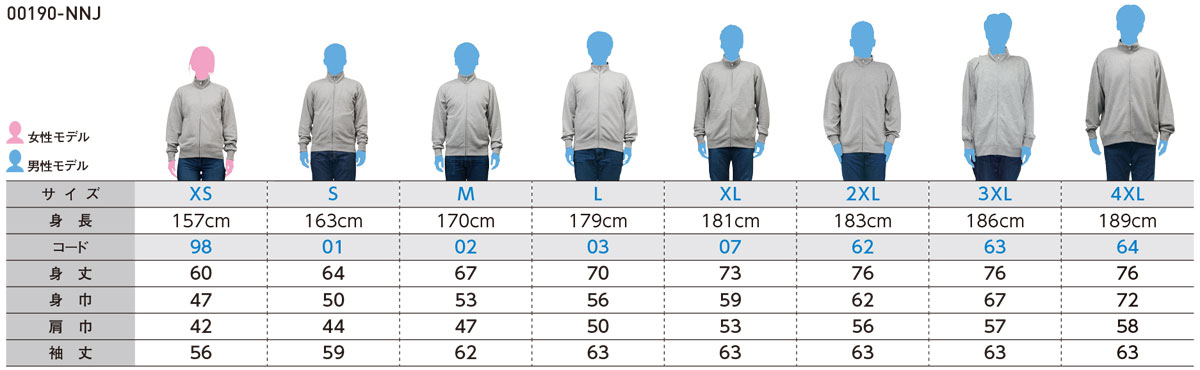 | サイズ | XS | S | M | L | XL | 2XL | 3XL | 4XL |